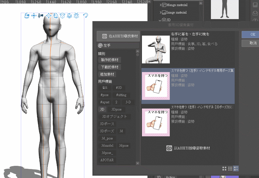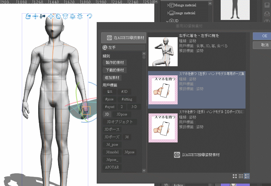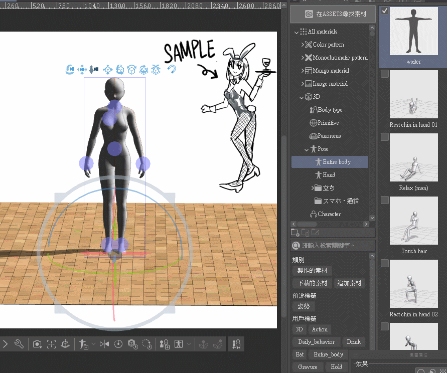 Cependant, la 【pose】 dans la bibliothèque de matériaux ne doit pas nécessairement être appliquée à une figurine de dessin 3D existante sur la toile,
