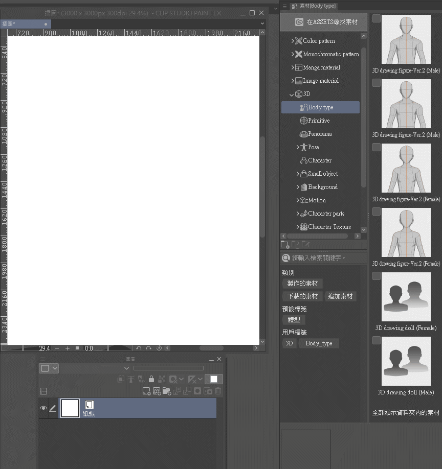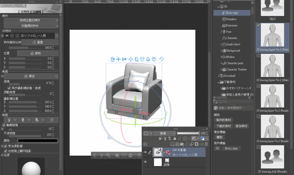 Veuillez trouver [Type de corps] dans la catégorie [3D] de la [Palette de matériaux] et faites glisser la figurine souhaitée sur la toile.