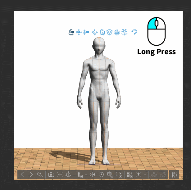 Vous pouvez utiliser le bouton 【Inverser horizontalement la pose du modèle】.