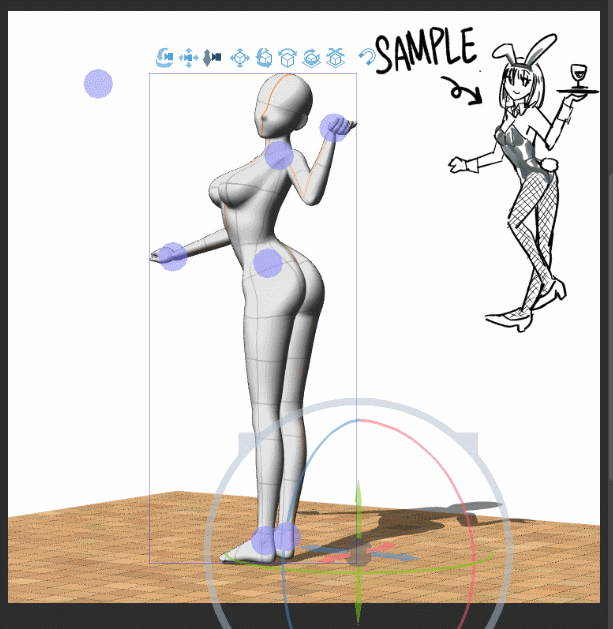 Pour les modèles de personnages, les poses sont généralement ajustées en commençant par le mouvement du bassin, car c'est généralement le 【centre de gravité】 du personnage.
