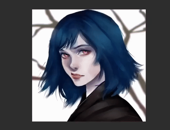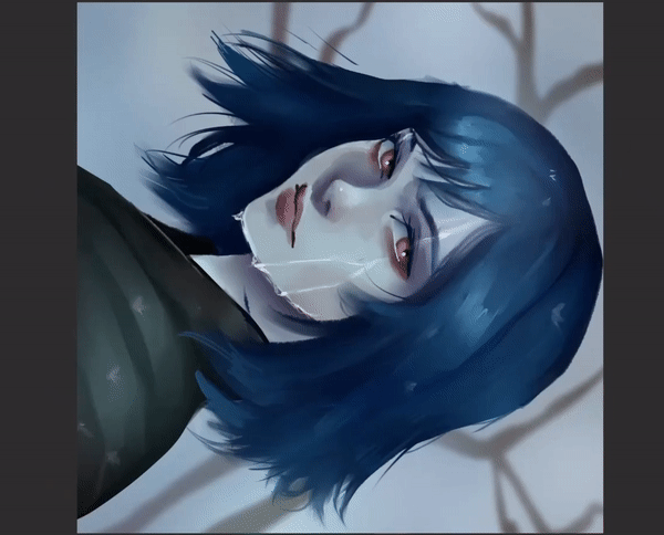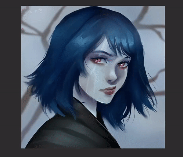 Nous pouvons utiliser le crayon ou le stylo G pour l'eau qui coule sur son visage, puis la mélanger avec le mélangeur de style peinture, de même pour les reflets dans ses cheveux.