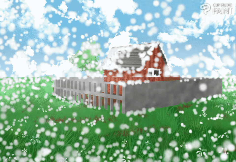 Ajoutons plus de dynamisme à l'illustration, j'ai utilisé l'outil par défaut de CSP pour ajouter de la pluie à l'illustration.