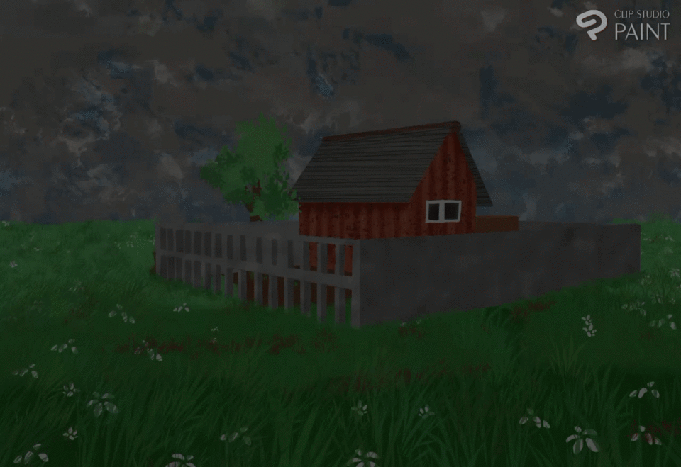 Utilisez le même ciel que celui que vous avez utilisé en peignant un ciel ensoleillé, mais cette fois, réglez le calque de nuage pour ajouter de la lueur afin d'éclaircir le ciel.