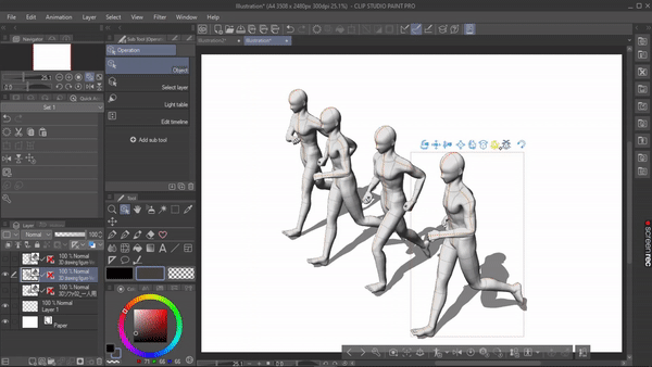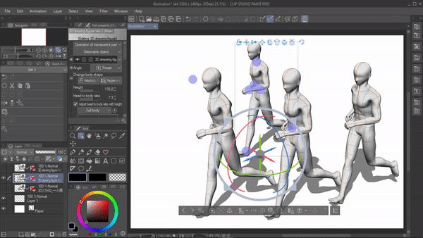 Par exemple : j'ai un groupe de figures 3D dans la même pose de course. Pour modifier certaines des poses au lieu de chercher une pose dans les ressources, nous pouvons simplement retourner cette figure 3D et la manipuler un petit peu pour qu'elle ressemble à une pose complètement différente.