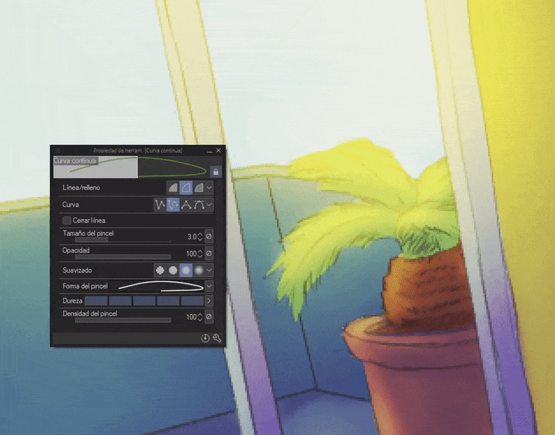 ASTUCES PRO : En utilisant la touche SHIFT (⇧), vous pouvez tracer une ligne droite avec n'importe quel pinceau. Cela aiderait à améliorer les bords, et à réduire la densité du pinceau pour travailler les détails.