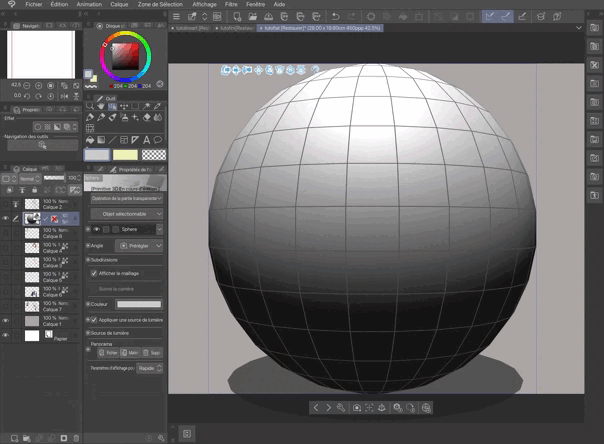Clip Studio Paint a de merveilleuses ressources pour aider dans le placement des ombres : lorsque vous importez un modèle 3D sur votre toile, vous pouvez utiliser l’outil “appliquer une source de lumière” pour voir votre objet se faire éclairer par un projecteur et donc vous aiguillez dans le placement de vos ombres.