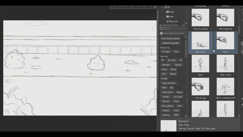 L'un des aspects les plus utiles des modèles 3D est que vous pouvez modifier les poses des modèles. Cela permet d'obtenir le modèle le plus proche de l'idéal pour chaque dessin.