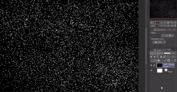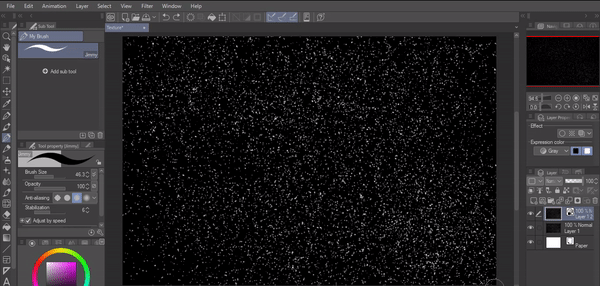 Sélectionnez le pinceau aérographe par défaut de Clip Studio, choisissez la couleur transparente et pulvérisez sur le calque noir.