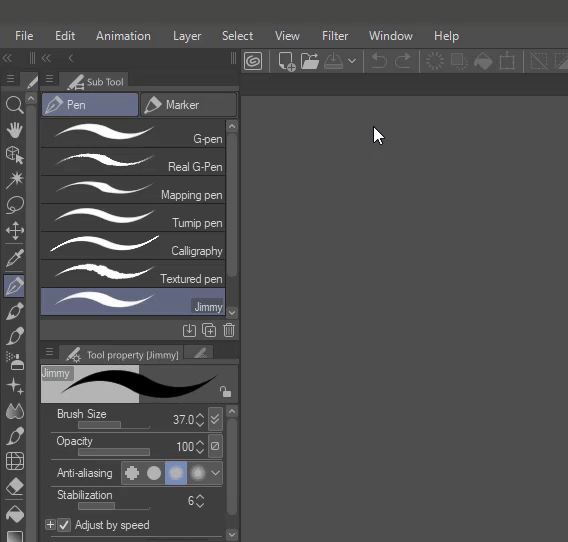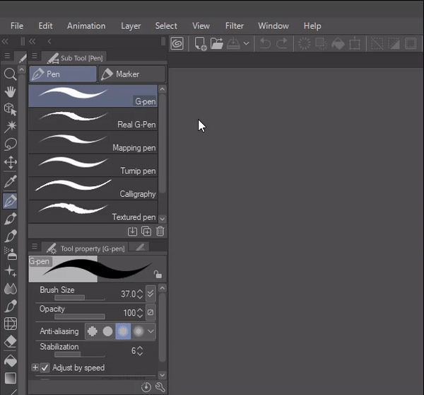 Nous allons utiliser le G-pen par défaut pour cela. Vous pouvez dupliquer le pinceau en faisant un clic droit sur le G-pen, puis en cliquant sur « Dupliquer le sous-outil »