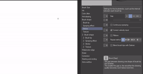 En cliquant sur l'icône en forme de clé sous les sous-outils, une fenêtre apparaîtra, qui contient différents paramètres avancés que vous pouvez donner à votre pinceau pour une meilleure sensation et pour qu'ils fonctionnent exactement comme vous le souhaitez.