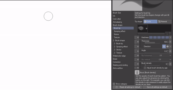 -Ensuite, liez la pression de votre stylet à la densité de votre pinceau et réduisez également la densité du pinceau.