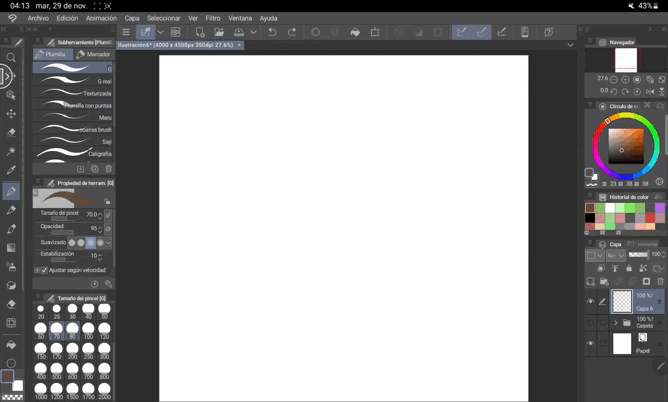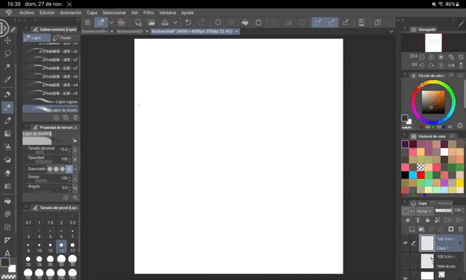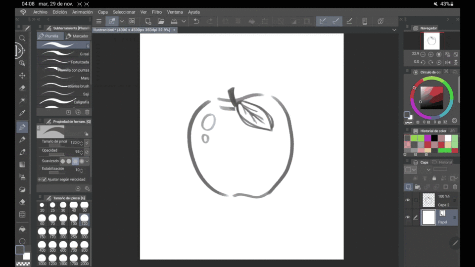 Avec cela, nous voyons les zones où nous avons échoué afin de pouvoir corriger les choses maintenant et non plus tard, une fois que tout sera plus avancé. À ce propos, je vous recommande également d'utiliser l'outil de fluidité. Avec cet outil, nous pouvons faire glisser des zones de notre dessin sur elles-mêmes pour qu'il se « déforme » un peu, mais cela nous permet de corriger les imperfections de notre œuvre.