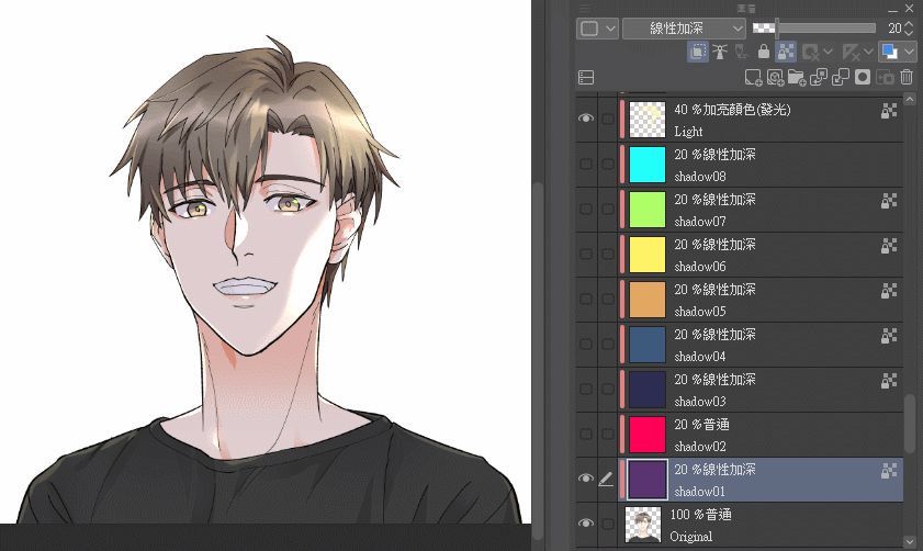 ➜Ajoutez d'abord un calque d'ombre au-dessus du calque, puis créez un nouveau calque pour dessiner les zones lumineuses.