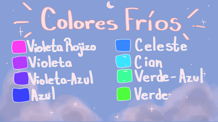 Dans le cas des couleurs froides, on peut dire qu'elles vont du violet au vert, bien que, comme pour les couleurs chaudes, cela soit géré de différentes manières dans différents diagrammes.