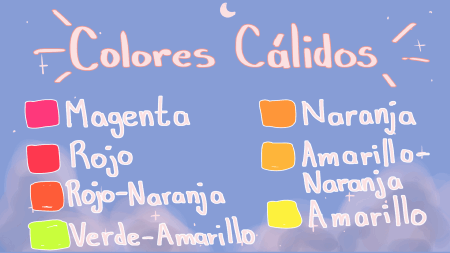 Bien, commençons par les couleurs chaudes, mais avant cela, posons-nous la question : pourquoi les appelons-nous couleurs chaudes ? La réponse courte est en raison de la sensation qu'elles nous procurent lorsque nous les voyons, mais elles nous procurent réellement une sensation de chaleur car ce sont les couleurs que nous observons le plus souvent dans les zones chaudes et que nous trouvons également dans des objets qui, au toucher, nous donnent cette sensation, comme le jaune avec la lumière du soleil, le rouge et l'orange avec le feu, etc.