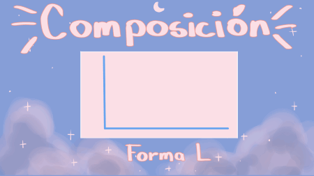 -La première que nous allons voir est la forme en L ou simplement L, qui consiste à placer un objet haut et les autres objets doivent être petits et près du sol. Dans cette composition, il y a beaucoup d'espace négatif que nous pouvons remplir avec des objets en arrière-plan qui ressemblent à de faibles silhouettes ou à des nuages. Pour créer un équilibre, nous pouvons ajouter un petit élément d'une couleur vive dans notre sélection de couleurs.