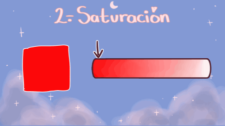-La saturation est l'intensité de la teinte ou du ton. On pourrait dire que lorsqu'une couleur est très saturée, c'est parce qu'elle est plus éloignée du gris et plus intense, tandis que si elle est peu saturée, cela signifie qu'elle est plus grise (bien que dans Clip Studio, nous puissions trouver une barre de saturation avec du blanc au lieu du gris, ce qui me semble plus pratique).