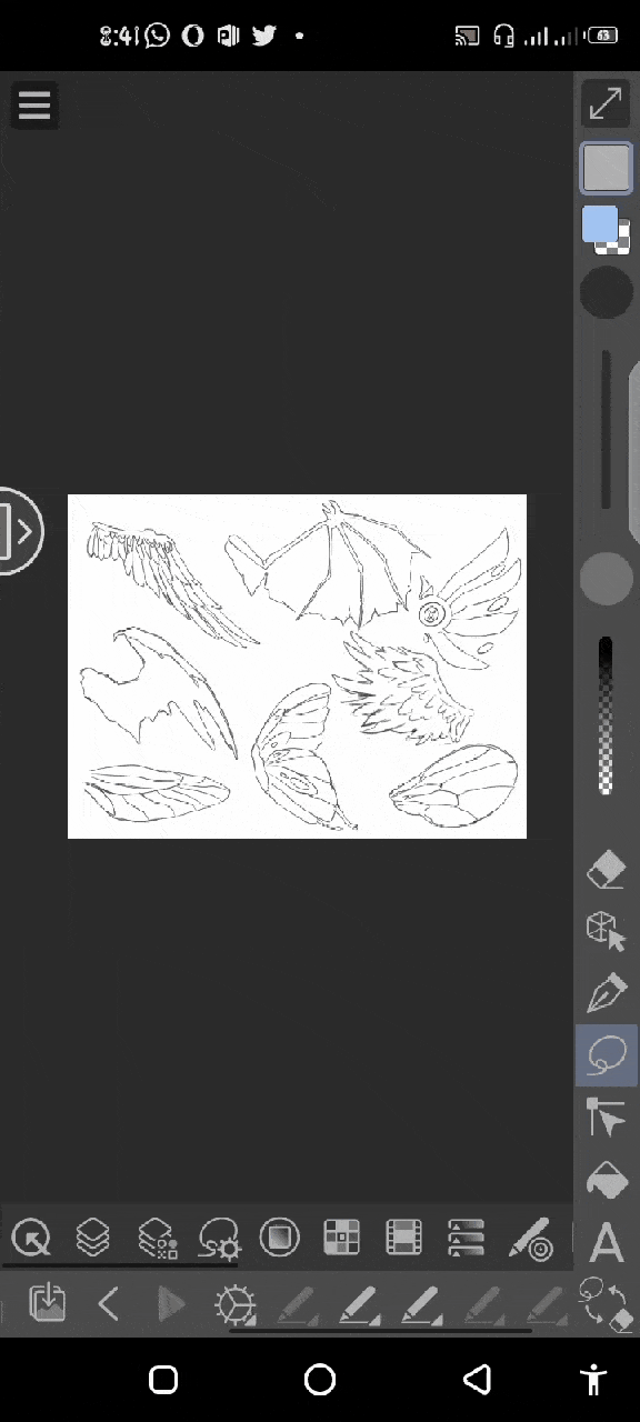 Ainsi, nous pouvons désactiver la visibilité des ailes de l'esquisse. Comme nous pouvons le voir, nous avons terminé de dessiner les différentes paires d'ailes pour les créatures fictives et non fictives comme les anges, les chauves-souris, les papillons, les dragons et plus encore.