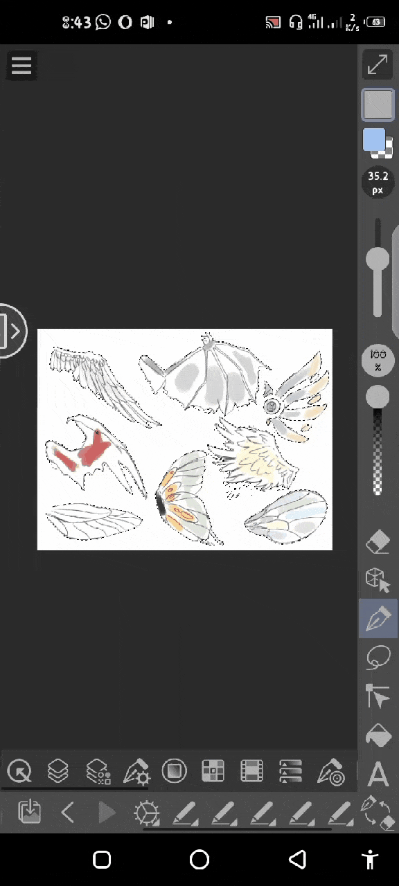 Maintenant, nous créons un autre calque, réduisons l'opacité du calque d'esquisse à 35% et nous pouvons maintenant dessiner un lineart de l'esquisse, nous pouvons également ajouter des détails supplémentaires aux ailes.