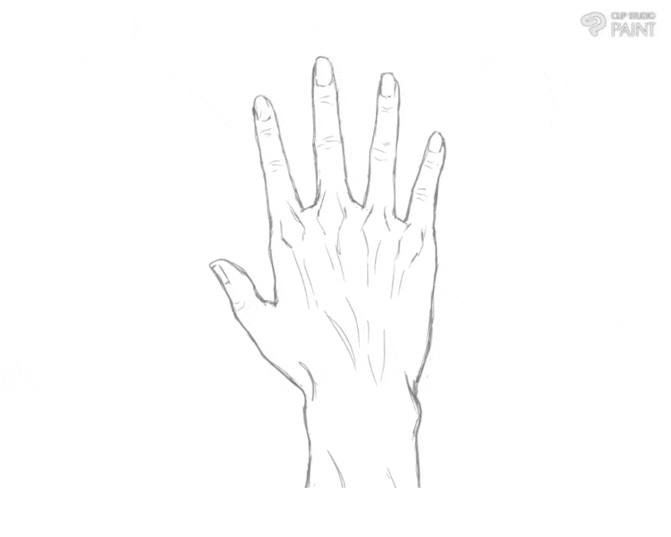 Pour l'arrière, les lignes des doigts traverseront la paume et, cela fait, les spectateurs pourront différencier la vue de face et de dos de la main.