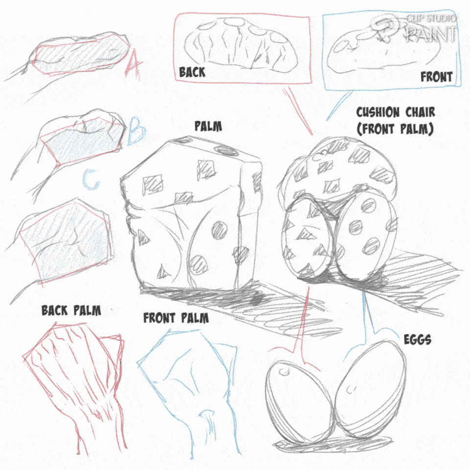 Ils pensent que nous devrions éviter et faire. Lorsque nous dessinons la vue de face et de dos d'une main, ce que nous devons faire est de laisser un espace entre les plats de la face avant sans que les lignes des doigts ne traversent la paume.