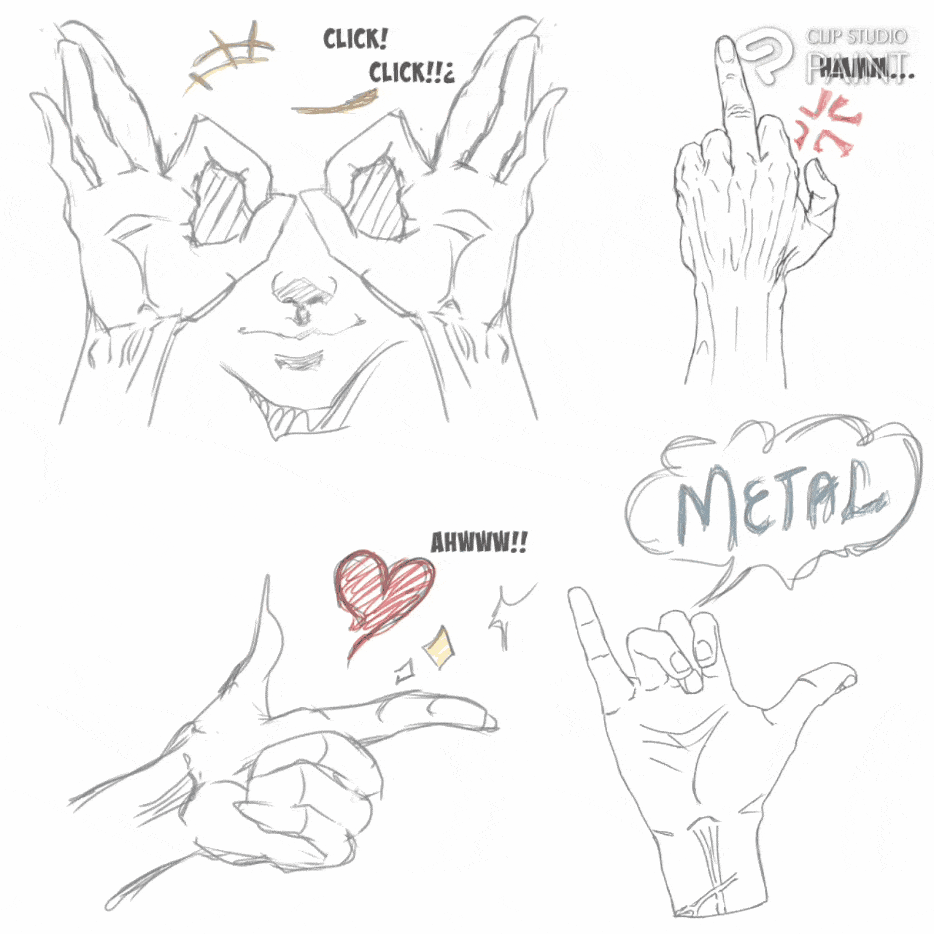 Les poses de main ont une façon unique de mieux rehausser l'expression de nos personnages et certains des gestes sont présentés ci-dessous.