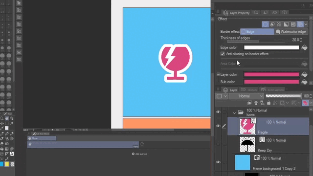 Le moyen le plus rapide et le plus simple de colorer un objet fichier est de changer la couleur avec la fonction Couleur du calque. Dans ce cas, nous allons utiliser des icônes plates. Donc, si vous voulez obtenir une couleur plate et uniforme, choisissez la même couleur pour le calque et la sous-couleur. Utilisez l'icône du pot de peinture pour appliquer la couleur que vous avez actuellement sélectionnée.