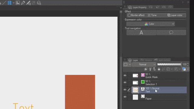 Pour les calques de texte, vous pouvez également voir les trois effets standard et les couleurs d'expression. Mais pour les calques de masque rapide et de sélection, vous ne pouvez changer que la couleur.