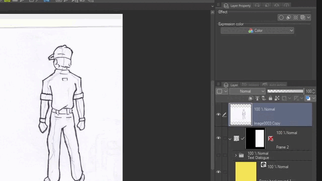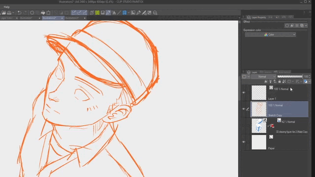 La couleur bleu clair par défaut de la Couleur du calque peut être utile pour les personnes habituées à esquisser d'abord avec un crayon bleu, puis à dessiner ou à encrer par-dessus le croquis avec une couleur différente ou de l'encre noire. Cela peut également être utile dans Clip Studio lorsque vous utilisez un personnage 3D et que vous souhaitez esquisser ou dessiner par-dessus la référence.