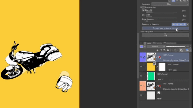 1.2 Pour Clip Studio EX (Extraire les lignes)