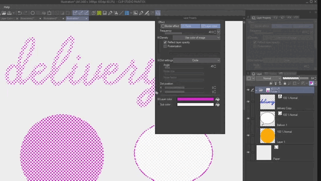 Utiliser les fonctionnalités et effets de la palette Propriétés du calque dans CSP