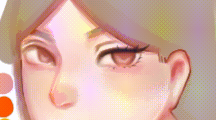 Pour les cils et les sourcils, j'utilise toujours la gouache mais avec une opacité plus élevée et une taille de pinceau plus petite pour créer des mèches.