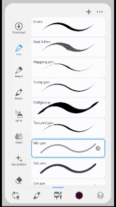 (3) Sélection de pinceaux où, même en mode simple, Clip Studio Paint n'a pas limité l'accès au choix des pinceaux dont vous avez besoin. Il y en a une multitude parmi lesquels choisir, et vous pouvez également télécharger des pinceaux depuis la bibliothèque !