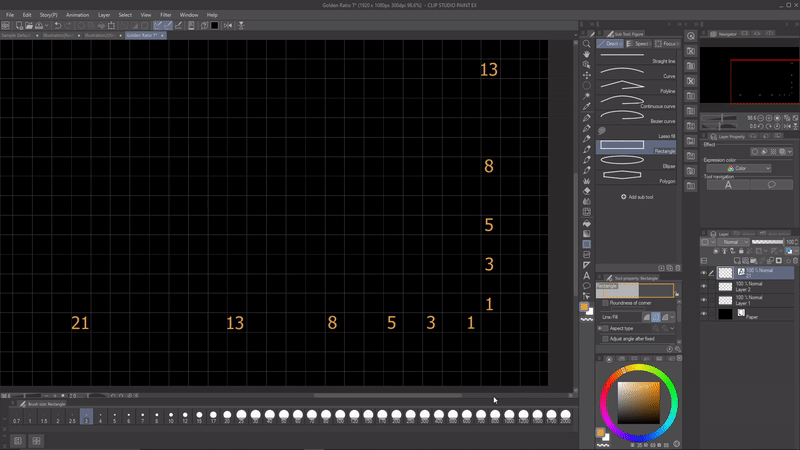 Dessinez une ligne rectangulaire suivant la séquence de Fibonacci.