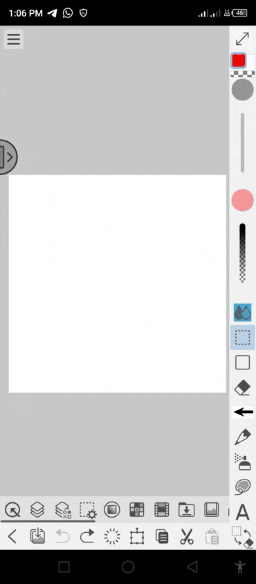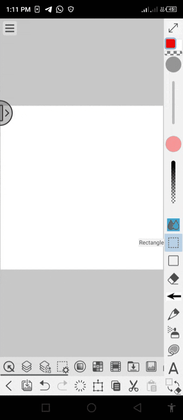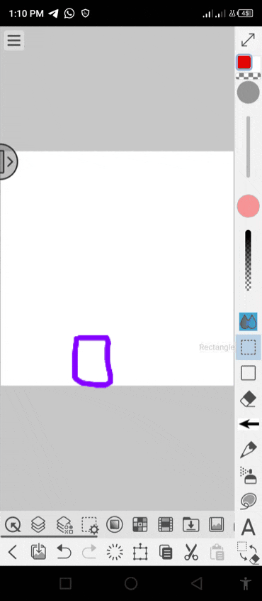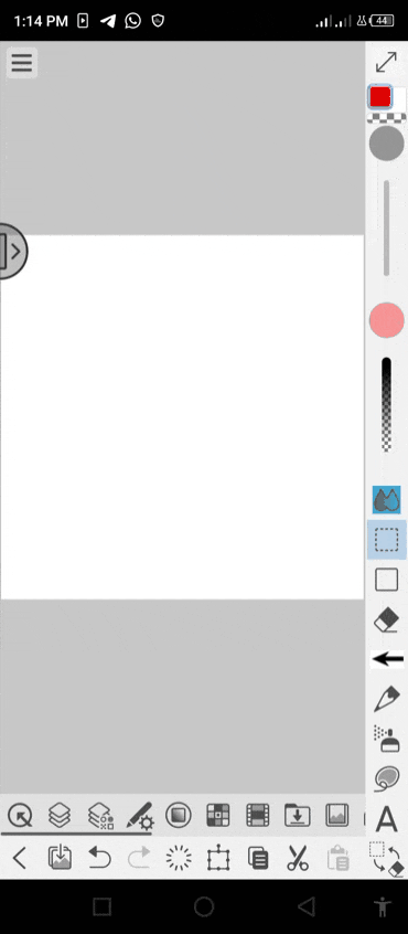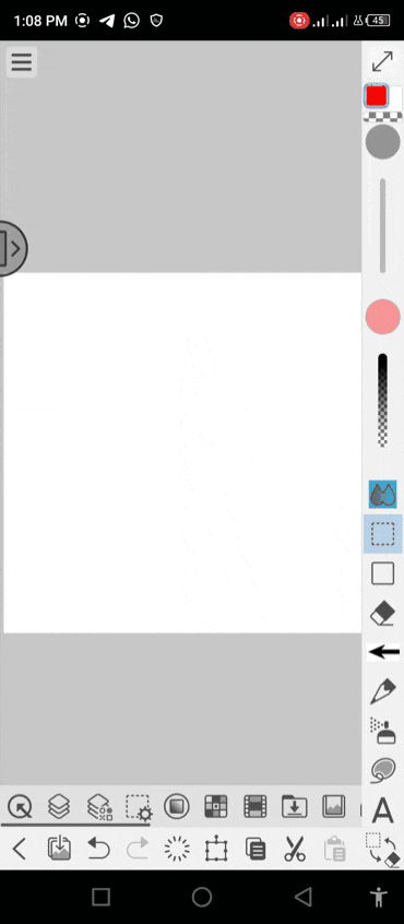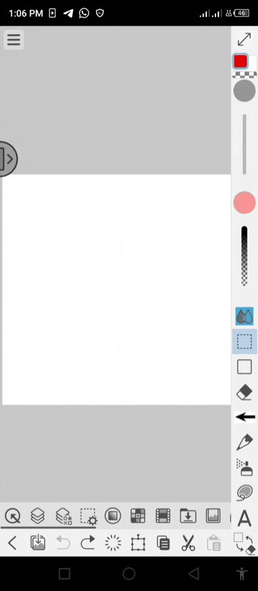 Pour commencer, nous devons d'abord sélectionner les 'sous-outils de sélection' situés sur la barre d'édition, puis sélectionner la 'portion du calque' ou l'image qui, pour l'instant, ne sera qu'une portion vide d'un calque de la toile comme indiqué ci-dessous.