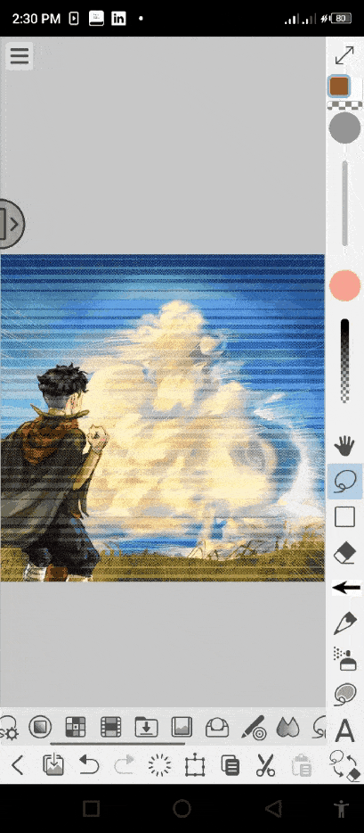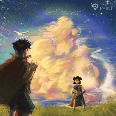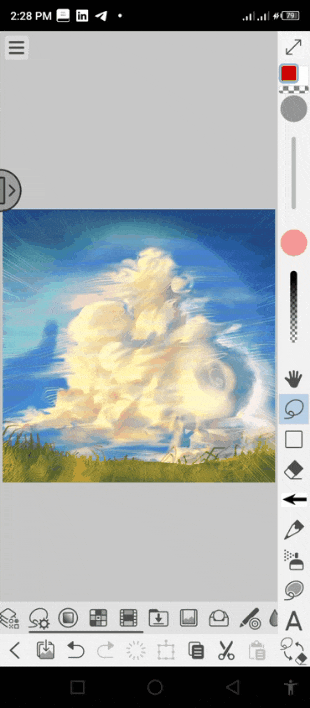 Note : Je tiens à souligner la façon dont j'ai créé la forme ronde avec la couleur bleue dégradée autour : j'ai simplement utilisé les sous-outils de sélection de forme ronde (ou elliptique) pour créer une forme ronde derrière les nuages, puis j'ai sélectionné la fonction "inverser la zone sélectionnée" mentionnée ci-dessus. Ensuite, j'ai utilisé l'aérographe pour ajouter une couleur bleu clair douce à la bordure et enfin, j'ai mélangé la couleur avec celle de l'arrière-plan.