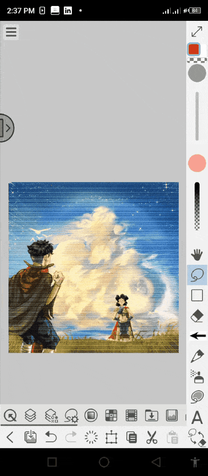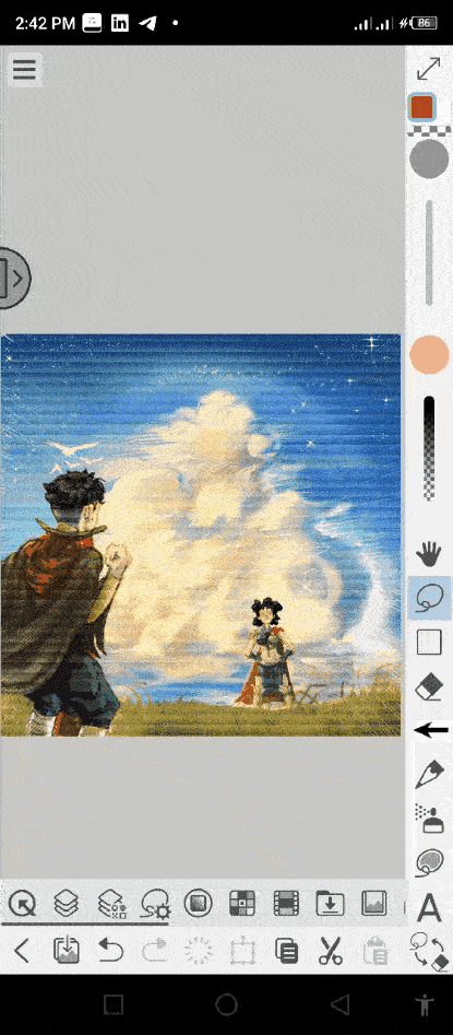 Premièrement, importez les différents ‘premiers personnages’, utilisez les [sous-outils de sélection lasso à réduction] pour sélectionner le personnage, créez un nouveau calque au-dessus du calque du personnage et fusionnez-les pour transformer rapidement le calque de ‘calque d'image' en ‘calque raster', puis sélectionnez l'icône de transformation sur la ‘barre de palette' et utilisez-la pour ajuster le personnage sur le [premier plan].