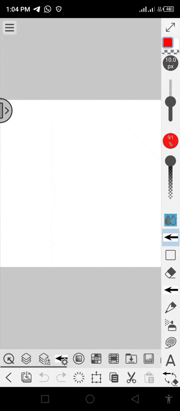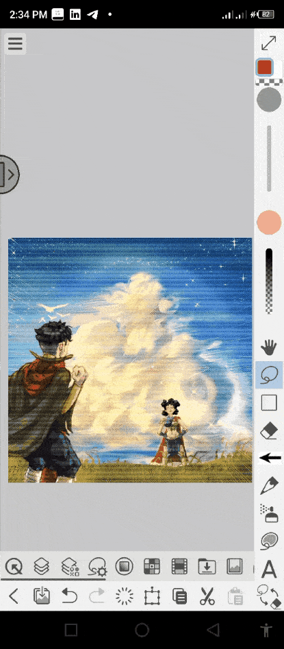 Ou nous pouvons simplement cliquer sur l'icône de transformation de la ‘barre de palette' sous la toile. Un tableau de bord apparaîtra avec différentes options, dont le retournement vertical. Cliquez sur l'icône ‘retourner verticalement'.