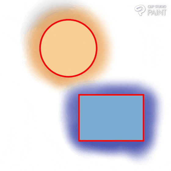 On peut également noter dans l'image ci-dessus que, pour les formes circulaires et carrées, la portion non sélectionnée (A et C) est la partie qui ne peut pas être affectée lors de la coloration, tandis que la portion sélectionnée (B et D) est la partie qui peut être affectée lors de la coloration.