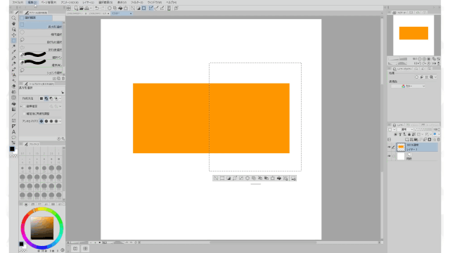 Le sous-outil [Sélection de rectangle] vous permet de créer une sélection rectangulaire en faisant glisser la souris en diagonale sur le canevas.