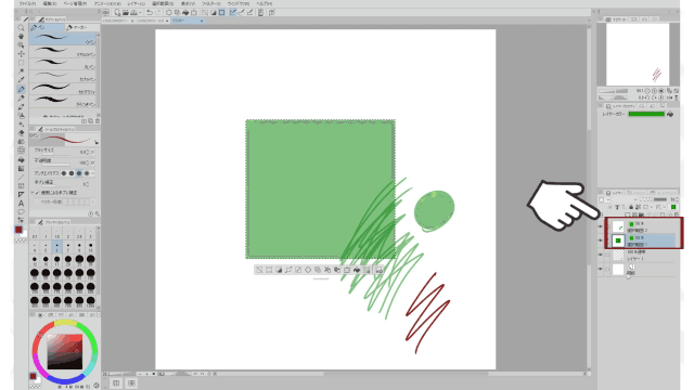 Alternativement, en sélectionnant [Calque] → [Sélection à partir du calque] → [Créer une sélection], vous pouvez créer une sélection à partir de la zone de dessin du calque actuellement sélectionné.