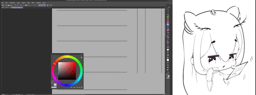 Avec le g-pen par défaut de Clip Studio Paint pour commencer. Cependant, si vous trouvez que c'est trop facile, c'est là que vous devez modifier pour augmenter la difficulté.