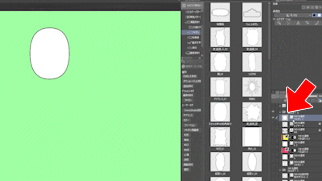 Vous pouvez enregistrer une bulle de dialogue dessinée en tant que matériau en la faisant glisser dans la palette de matériaux.