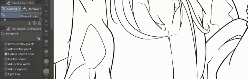 Utilisez le sous-outil Point de contrôle Redessiner l'épaisseur du trait vectoriel