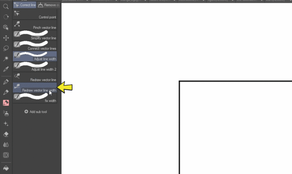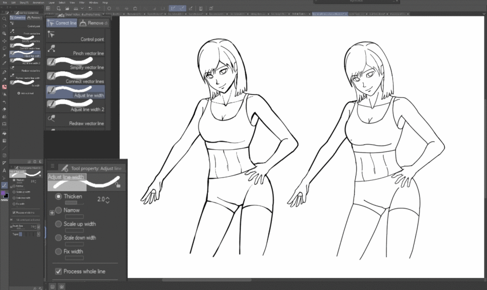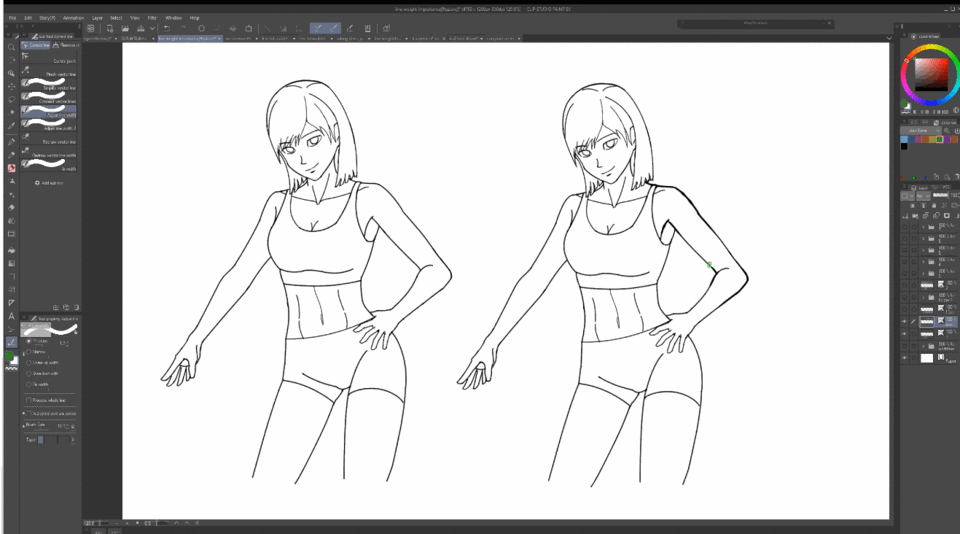 La cinquième façon est de loin la plus pratique et la plus puissante pour ajuster l'épaisseur de ligne dans Clip Studio Paint. C'est en utilisant ensemble un calque vectoriel et l'outil 'Correction de ligne'.