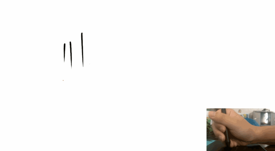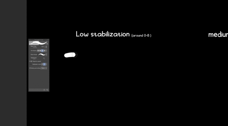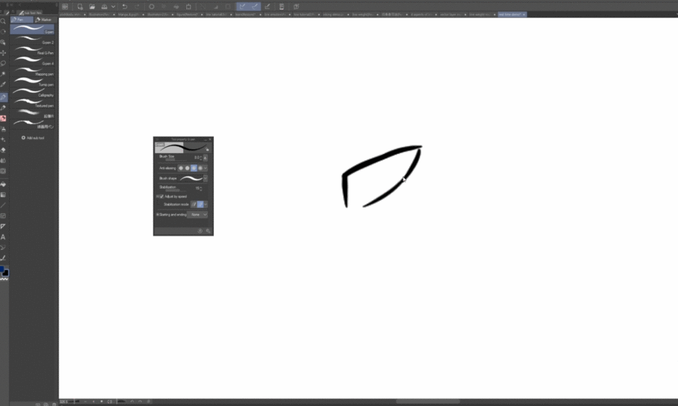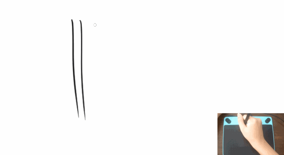 Deuxièmement, la stabilisation facilite le tracé de lignes effilées. Plus votre valeur de stabilisation est élevée, plus vous pouvez obtenir des lignes longues et effilées.