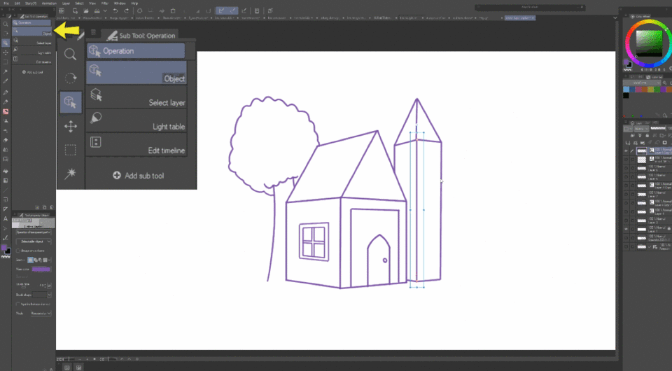 Dans les calques vectoriels, si vous maintenez la touche Ctrl ou utilisez le sous-outil Objet pour sélectionner l'une des lignes, vous pouvez voir plusieurs points créés entre chaque trait/chemin que vous dessinez. Cela vous permet d'ajuster votre dessin au trait d'innombrables fois sans perdre la qualité de la résolution.