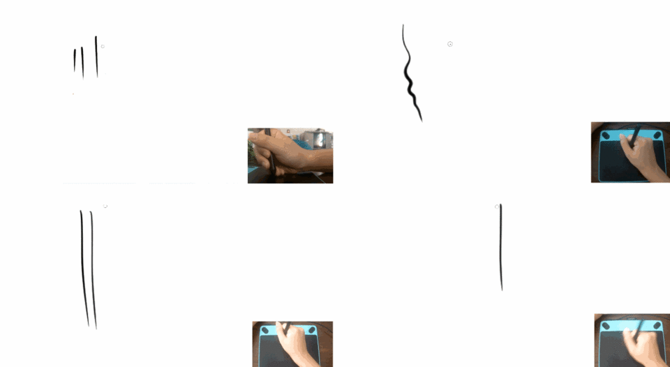 La première façon est de contrôler la pression de votre stylet. Appuyer plus fort sur le stylet donne des lignes épaisses tandis qu'appuyer plus doucement sur le stylet donne des lignes fines.