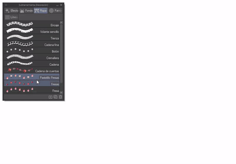 Maintenant, nous irons aux pinceaux « Décoration » inclus par défaut dans CLIP STUDIO PAINT. Nous choisirons le pinceau « Perle » et le dupliquerons en cliquant droit dessus, un menu apparaîtra où nous cocherons l'option « Dupliquer le sous-outil ».