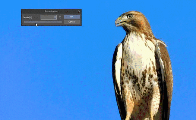 Mon faucon ici a beaucoup de contraste et de couleur concentrée. Un effet amusant que vous pouvez réaliser avec une image comme celle-là s'appelle la postérisation.
